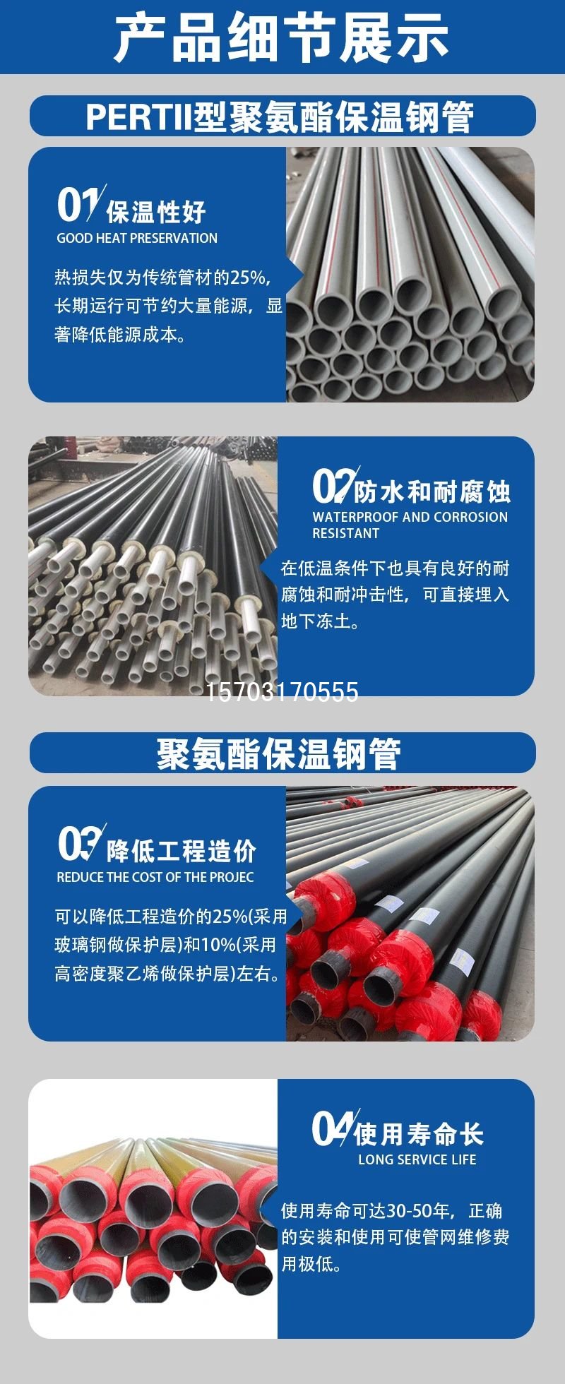 國標螺旋小黄片免费看(聚氨酯保溫)是一種具有優異保溫性能的複合型保溫小黄片免费看。它的管壁由聚氨酯泡沫塑料製成,這種材料具有良好的絕緣性能,可以有效地防止管道內部熱能散失,因此在很大程度上減少了能源的消耗和成本。此外,國標螺旋小黄片免费看(聚氨酯保溫)的外殼由鋼材覆蓋,具有堅硬、高強度及耐腐蝕的特性,這使得它的使用壽命較長。