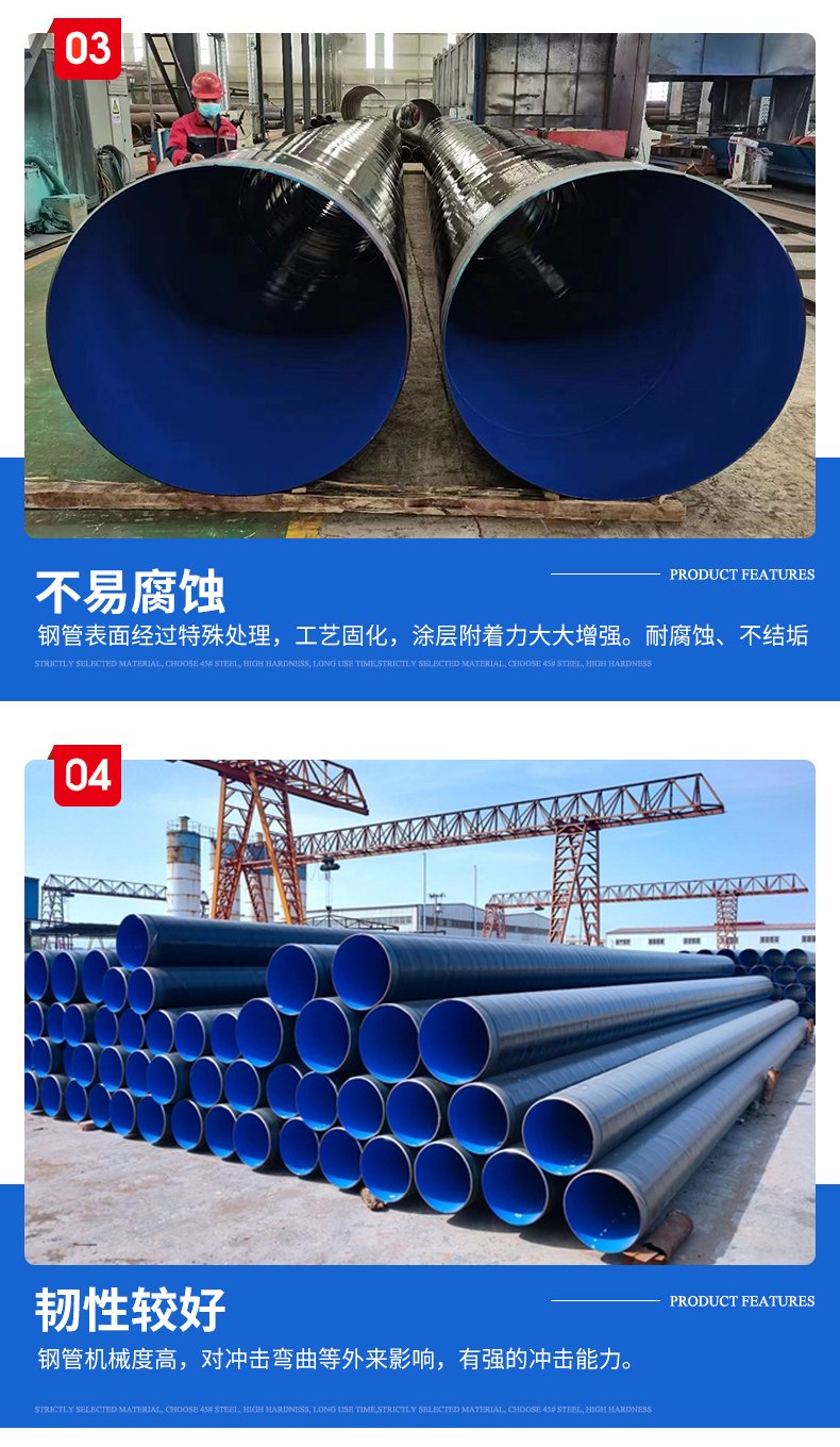 2. **耐磨性**:內層的環氧樹脂塗層具有良好的耐磨性能,可以減少管道內部的磨損,延長使用壽命。